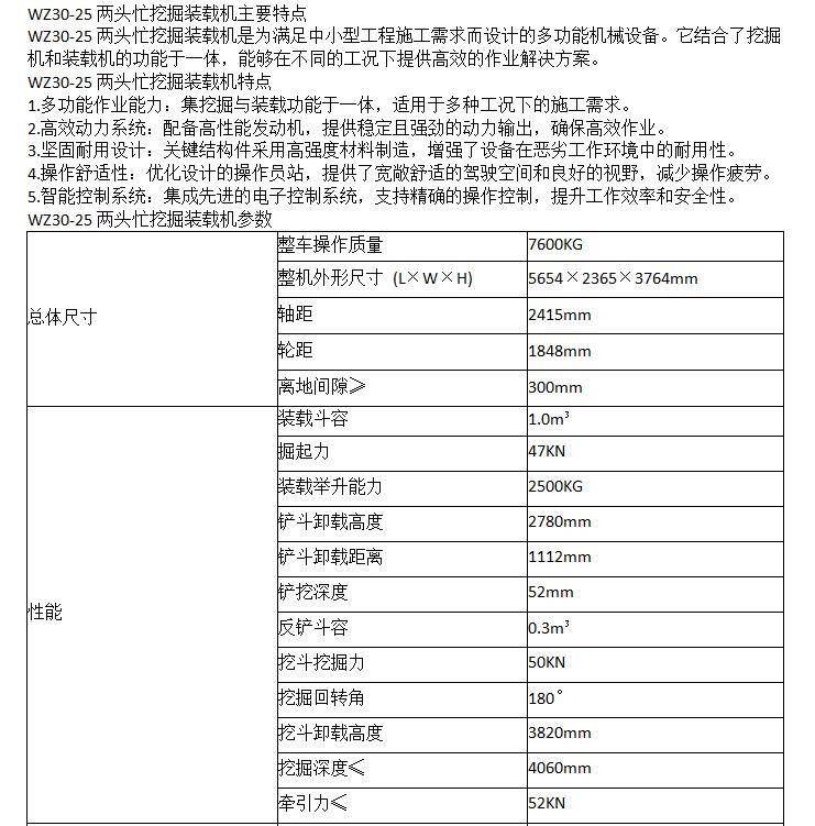 WZ30-25两头忙挖掘装载机 坚固耐用设计 操作舒适性