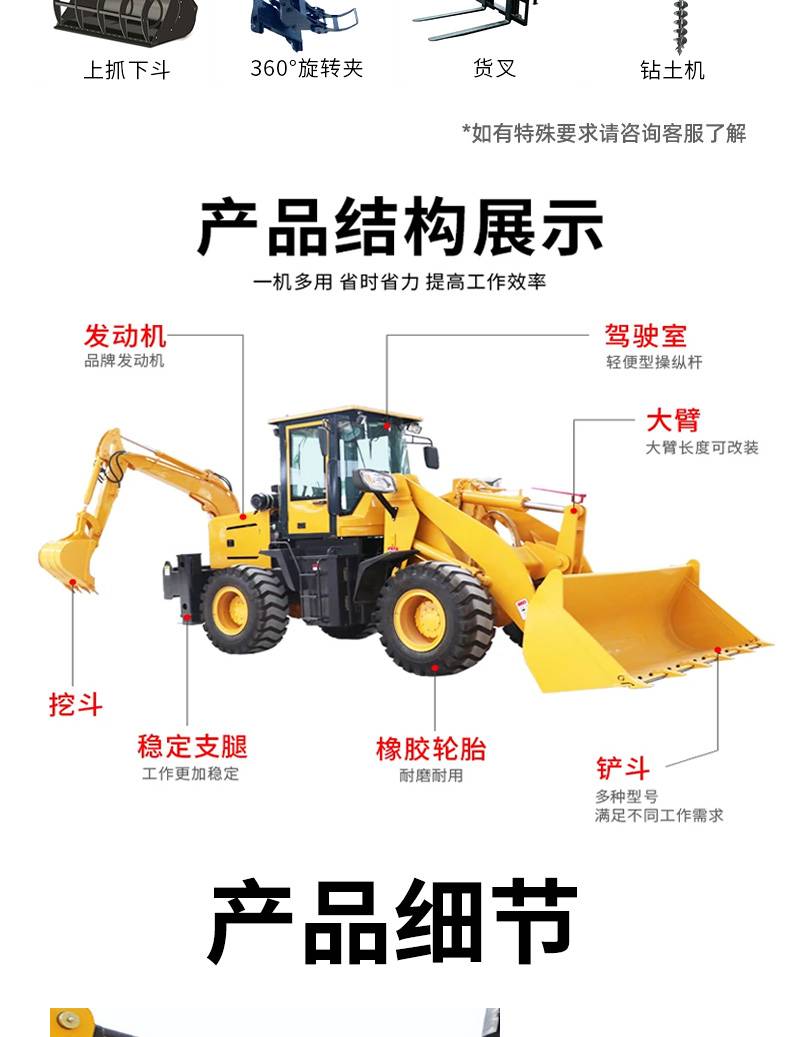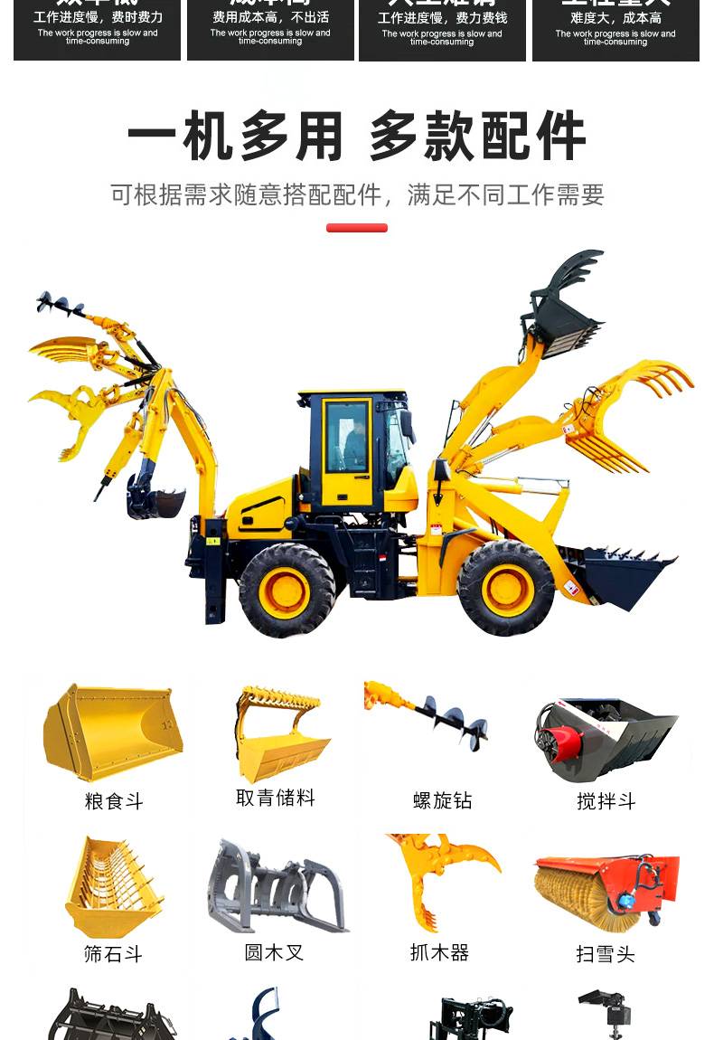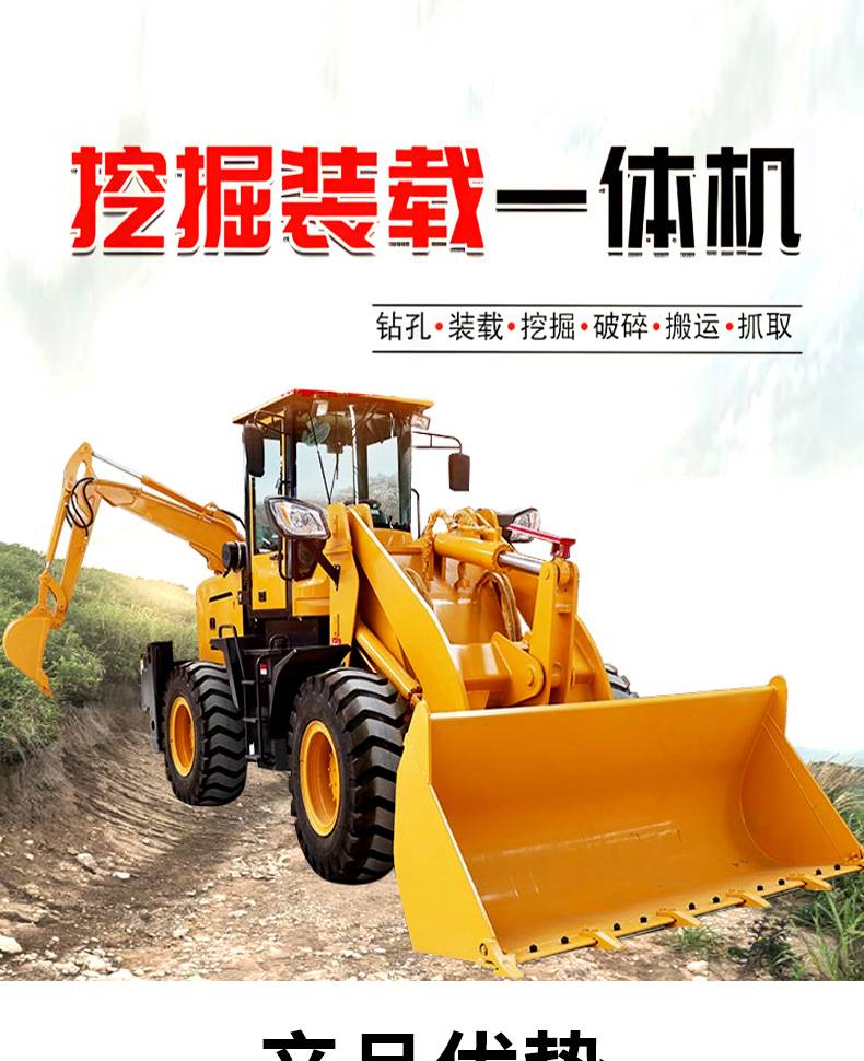 跨境专供多功能轮式两头忙挖掘装载机农用工程前挖后铲两用一体机