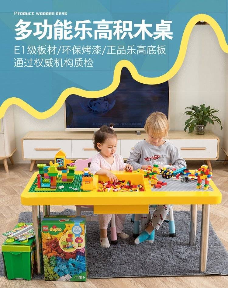 底板乐高积木桌多功能大小颗粒实木大尺寸学习桌子中间收纳