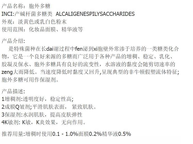 胞外多糖 产碱杆菌多糖 面膜精华液增稠保湿剂修护 100克