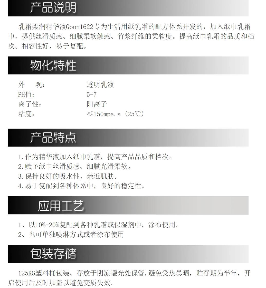 乳霜柔润精华液Goon1622 用于生活用纸润湿配方丝滑质感细腻亲肤