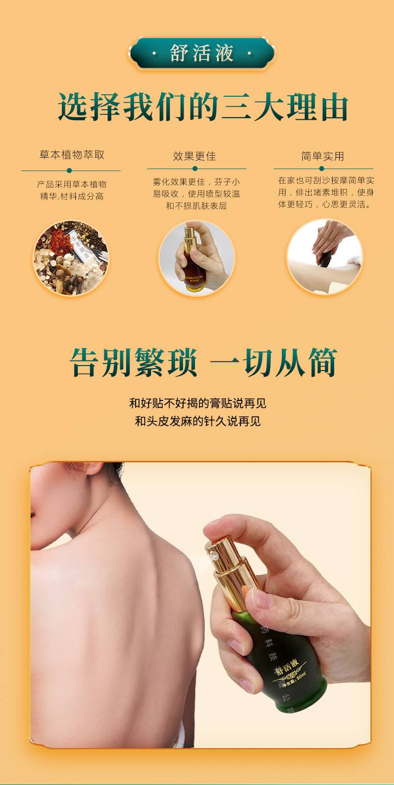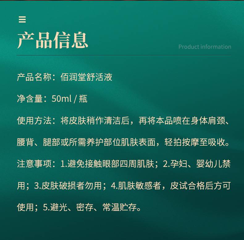 佰润堂养生按摩舒活液50ML喷雾式舒缓精华液痛滚滚刮痧发热舒活油