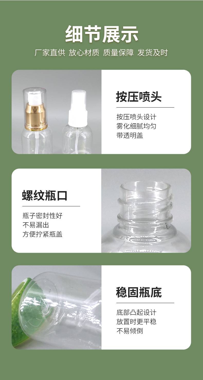 50ml化妆品精华喷雾瓶PET乳液分装瓶精油按压瓶粉底液瓶