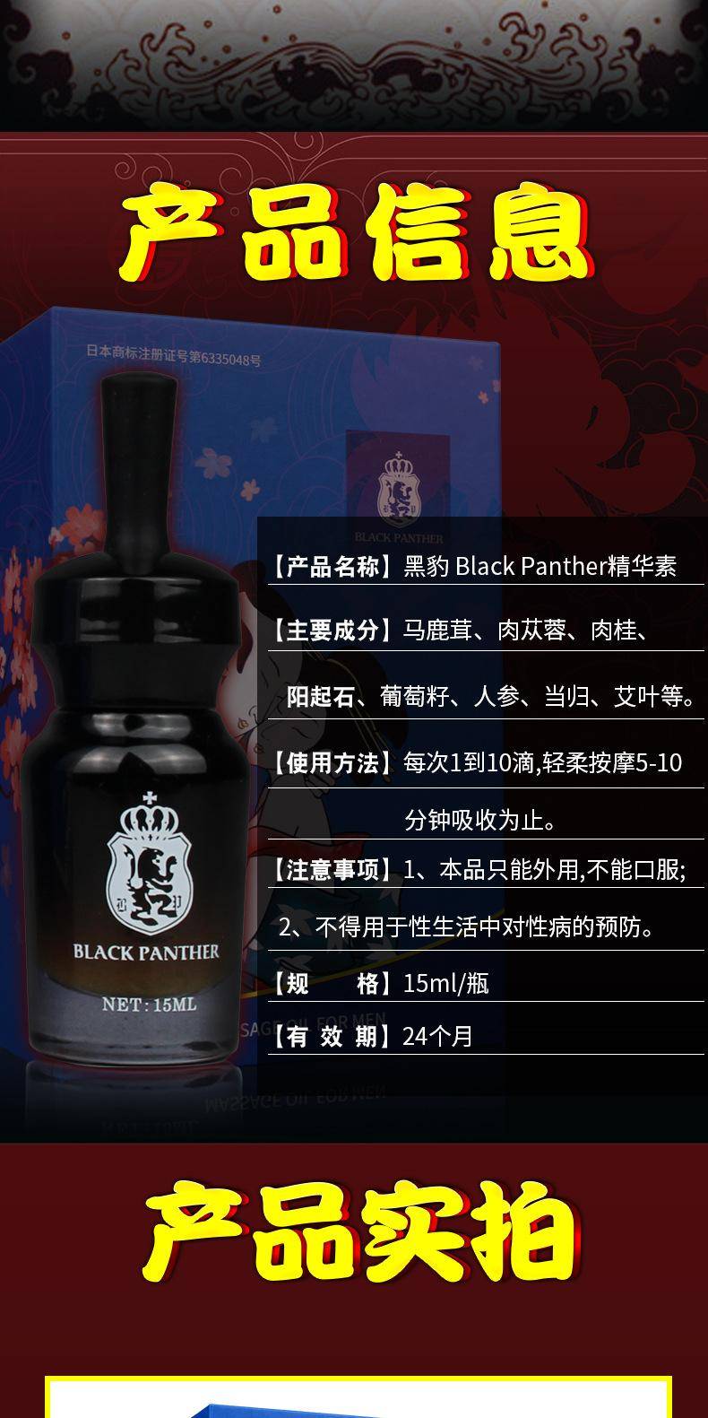 黑豹精华素男士精油15ml锻炼保养护理按摩液成人情趣性用品