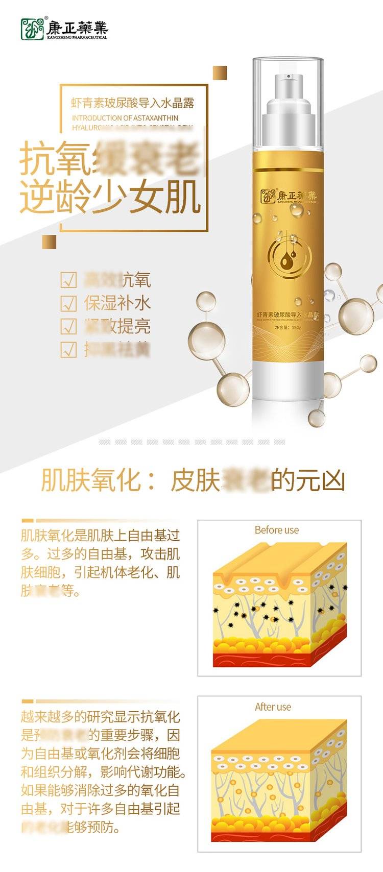 消字号代加工贴牌 虾青素玻尿酸精华80ml 康正药业皮肤抑菌液OEM ODM