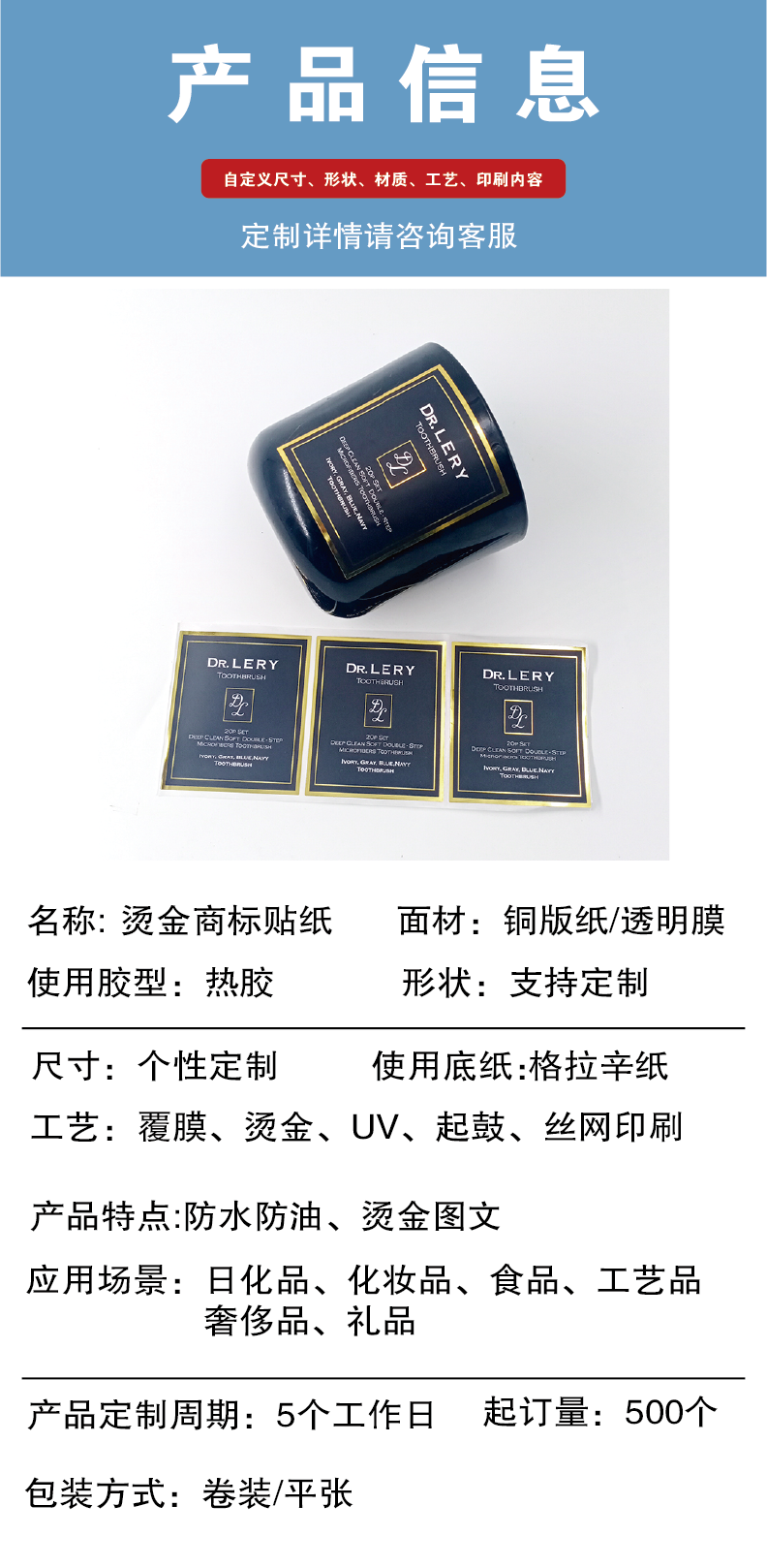 珠光膜护肤品标签精华液保湿霜瓶贴化妆品不干胶烫金商标贴纸