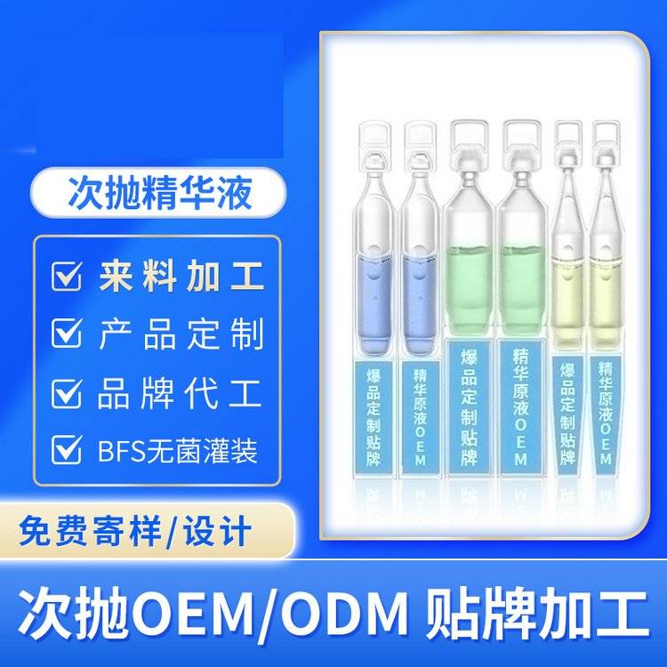 次抛精华液贴牌oem补水保湿提亮肤色紧致精华原液来料灌装代加工