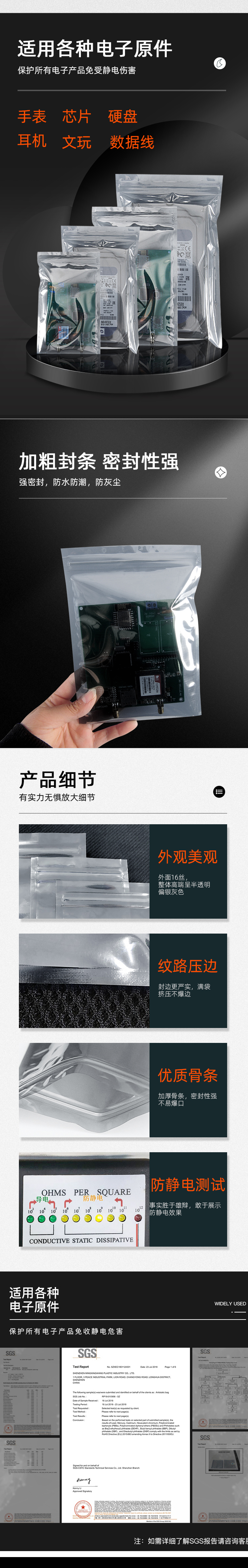 电子屏蔽袋防静电防潮真空包装袋元器件装袋专用