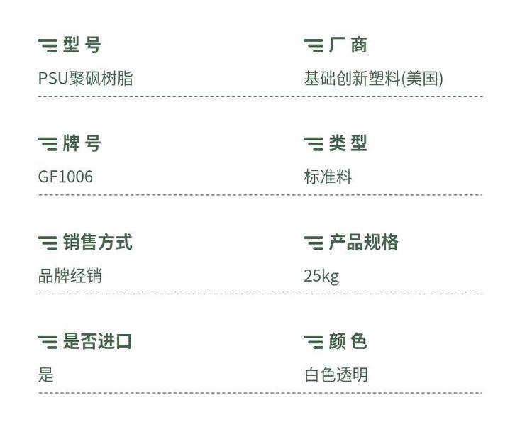 聚砜树脂PSU基础创新塑料(美国)GF1006 阻燃 耐化学耐蒸汽 聚砜