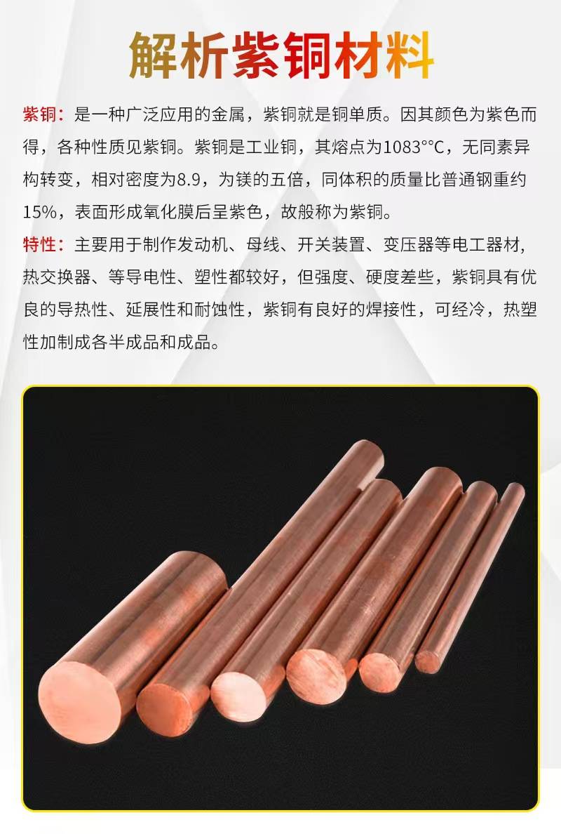 电真空器件用TU2导电电解无氧铜棒 折弯冲压红铜棒 实心棒