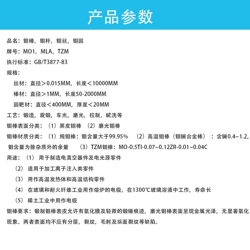 TZM高温钼合金棒 电光源零件电真空器件 加工定制零切