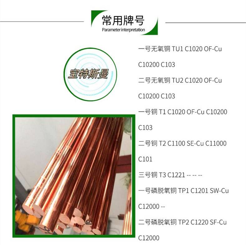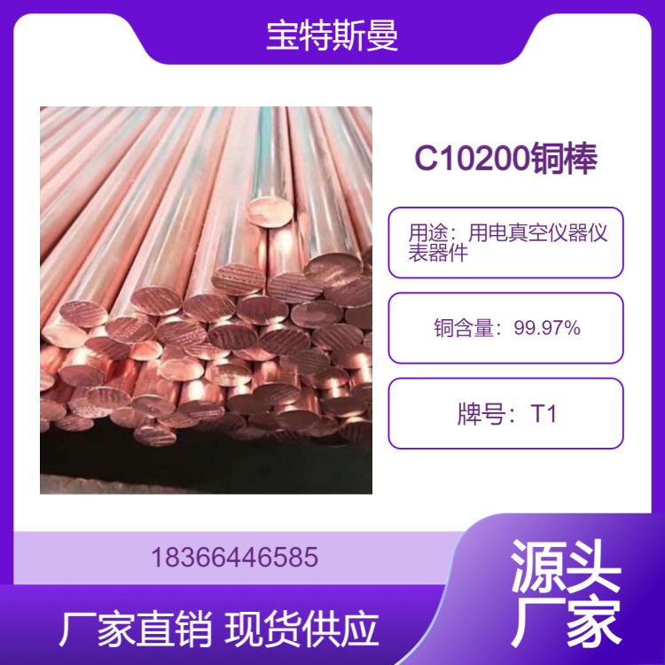 用电真空仪器仪表器件用铜合金 美标C10200紫铜棒