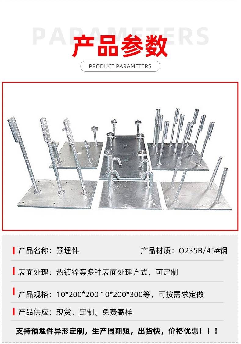 热镀锌四角开孔预埋件批发建筑支撑厂房仓库车间固定紧固件