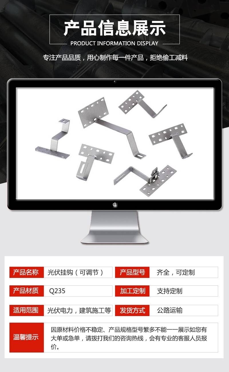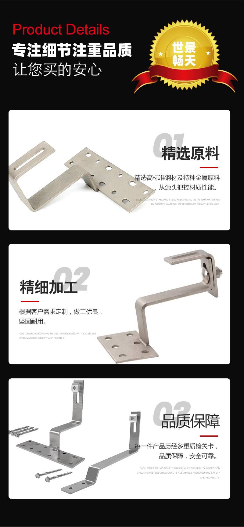 光伏挂钩太阳能可调节 光伏支架不锈钢热镀锌安装支撑屋顶固定件