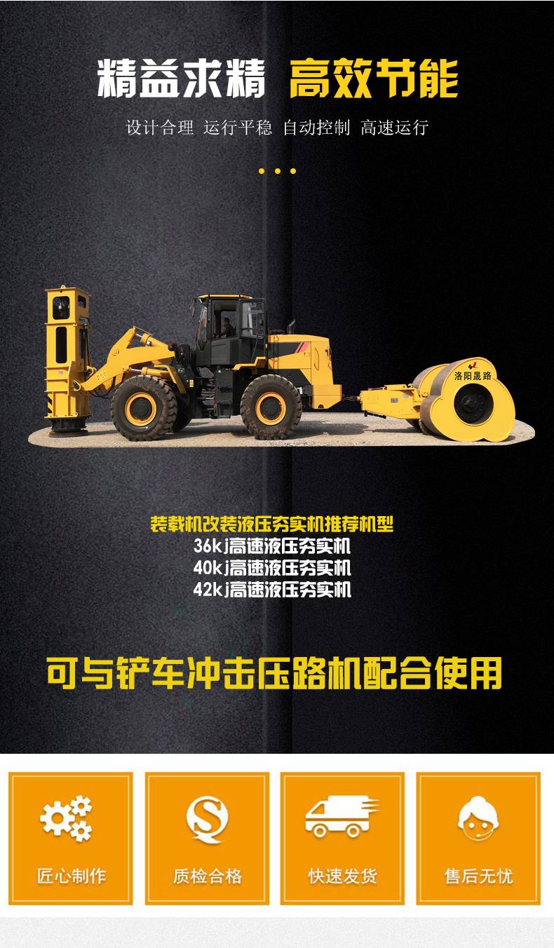 高速液压夯实机,装载机带的打夯机可与铲车冲击碾压机组合使用