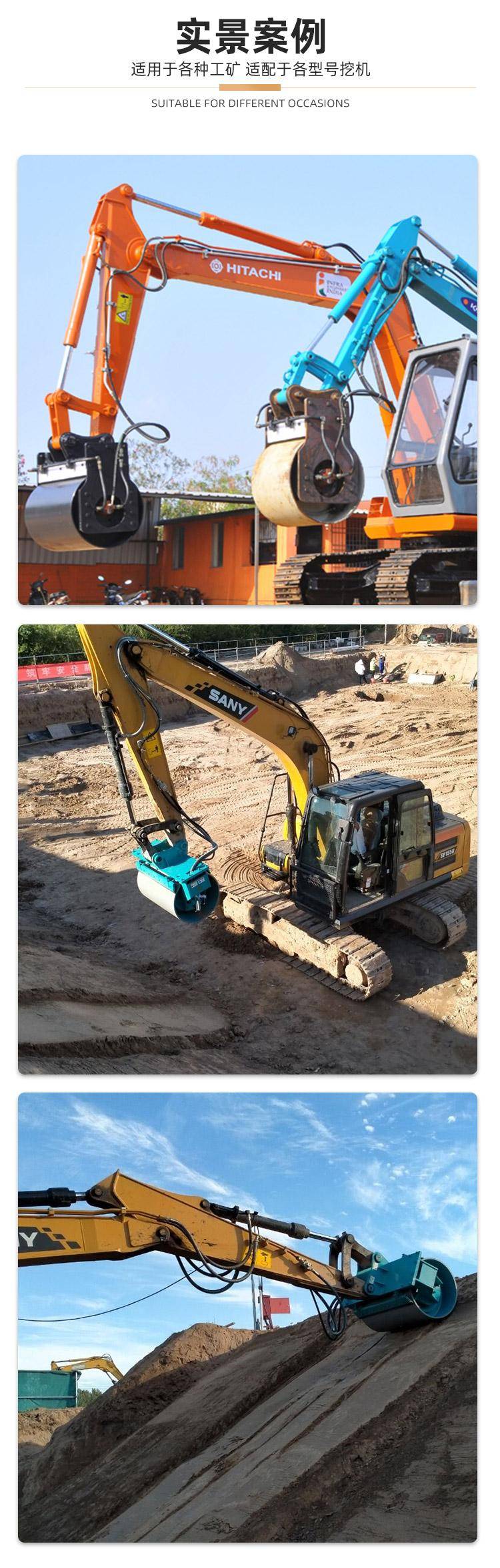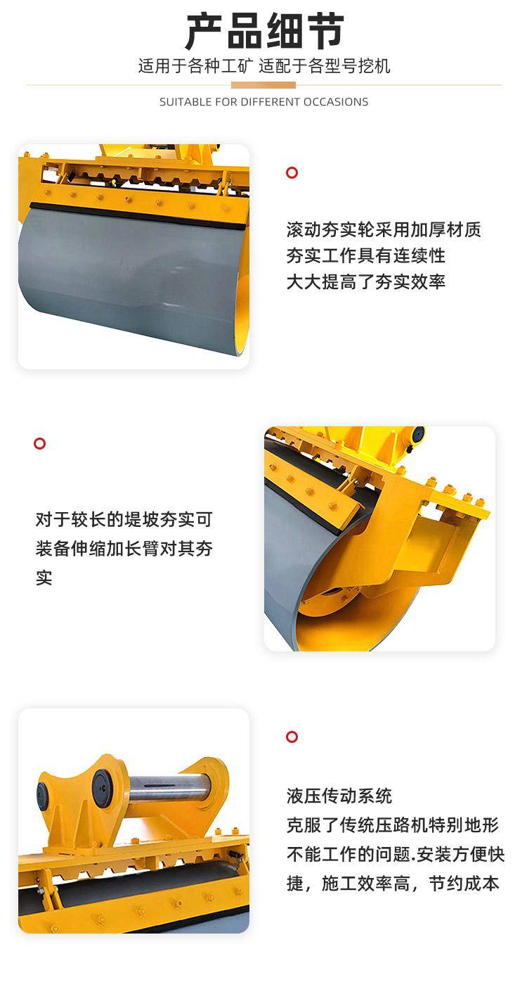 挖机碾压机 液压夯实器 滚筒夯实机 地基回填土震动 斜坡打夯机