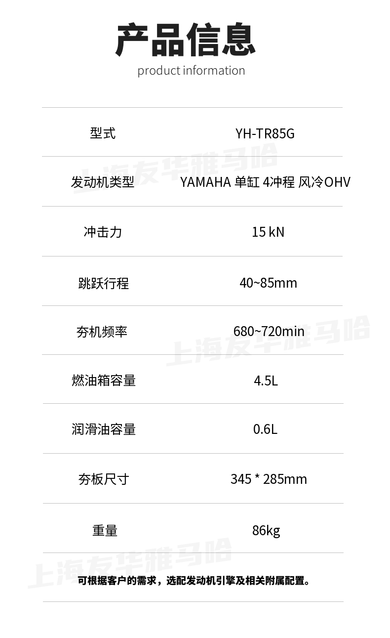 日本雅马哈汽油机冲击夯马路振动地基夯实打夯机5.5马力YH-TR85G
