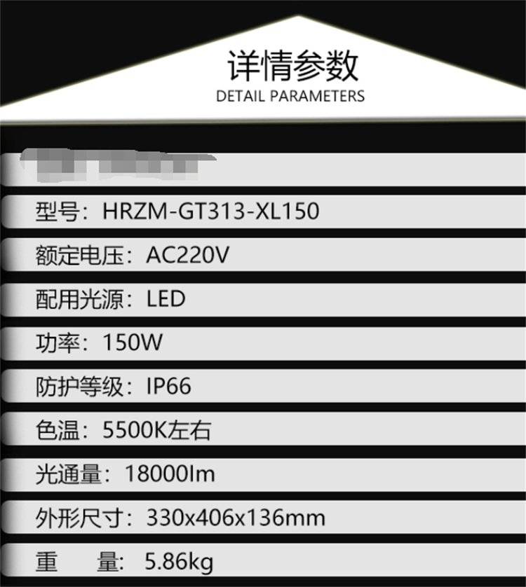 HRZM-GT313-XL150投光灯具模组场馆泛光灯150W厂房高顶照明灯