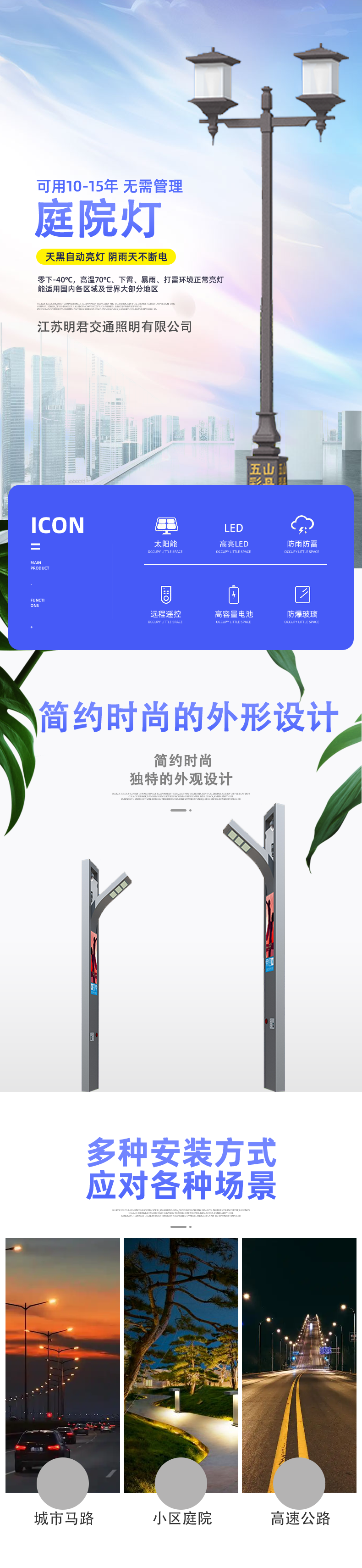 市政公园景区使用景观灯 户外感应庭院灯具 安装便捷 明君