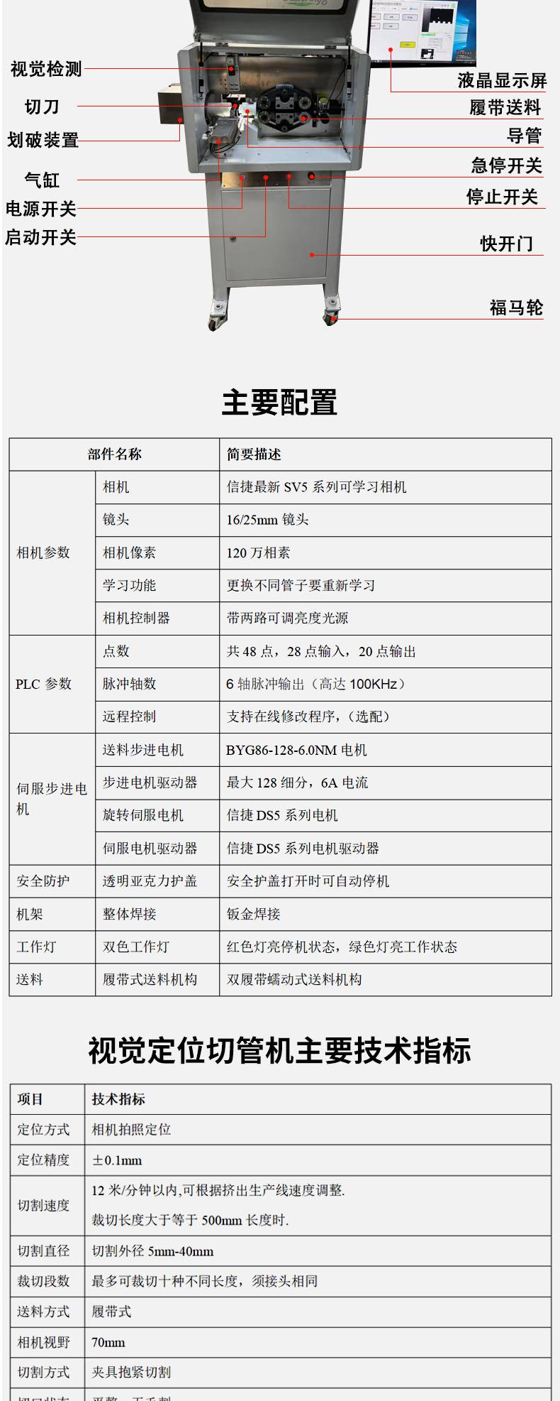 视觉定位波纹管切管机 履带送料无压痕 可观察工作状态 捷璟