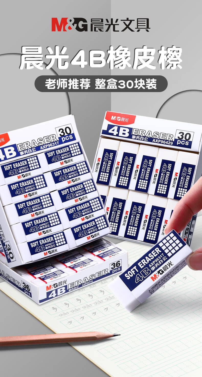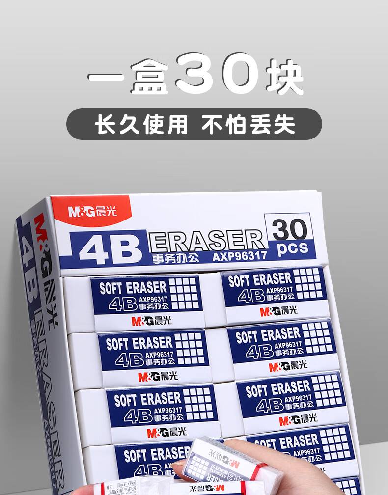 晨光特大号橡皮擦 无碎屑4B橡皮 30块/盒AXP96317