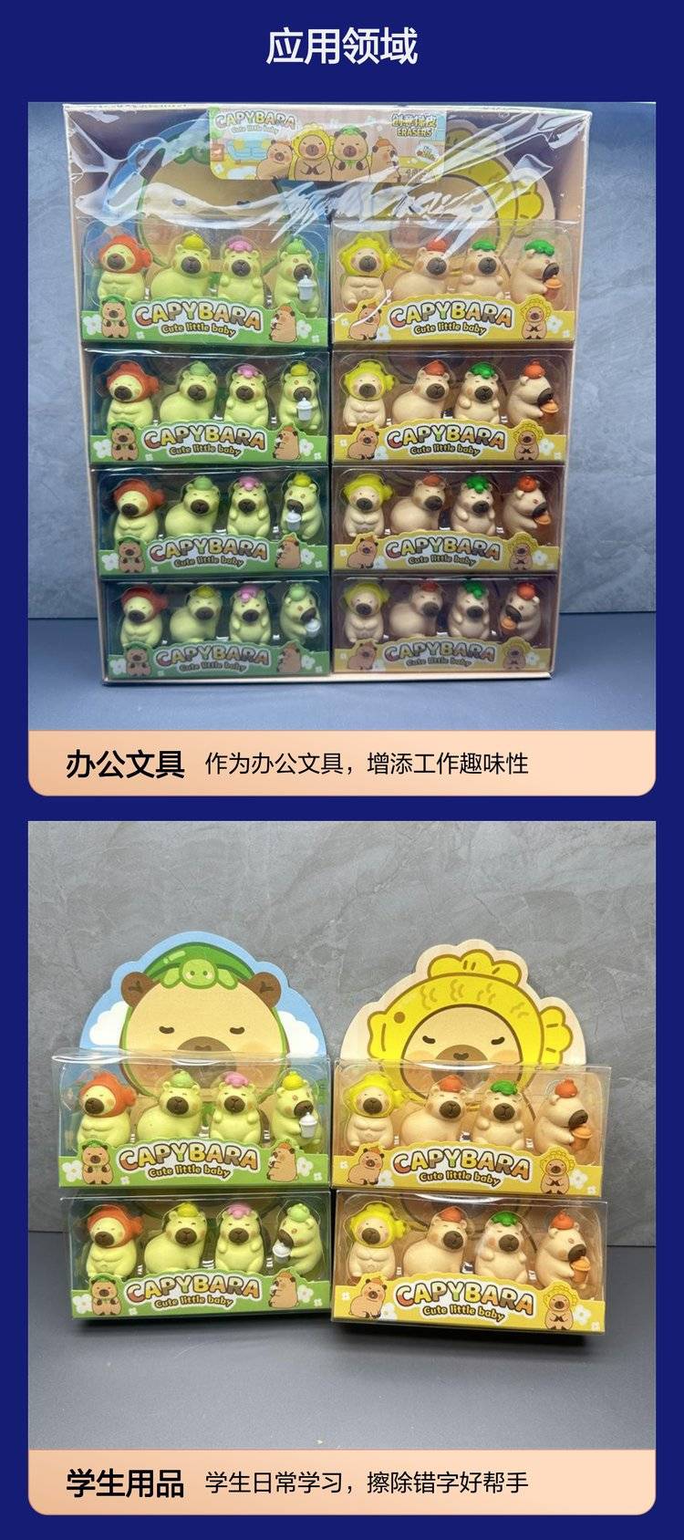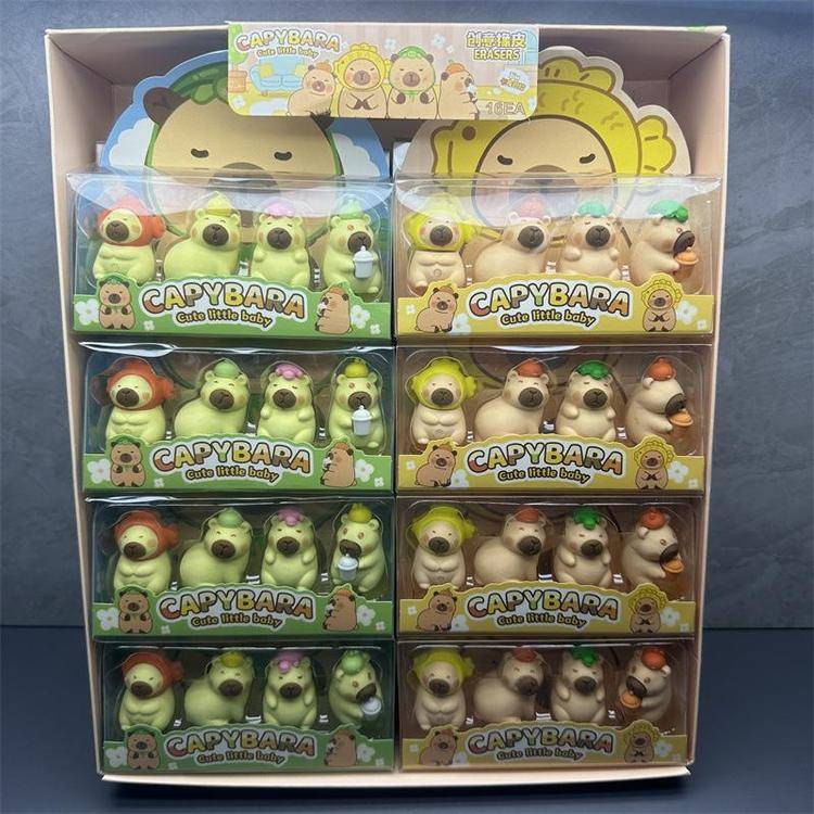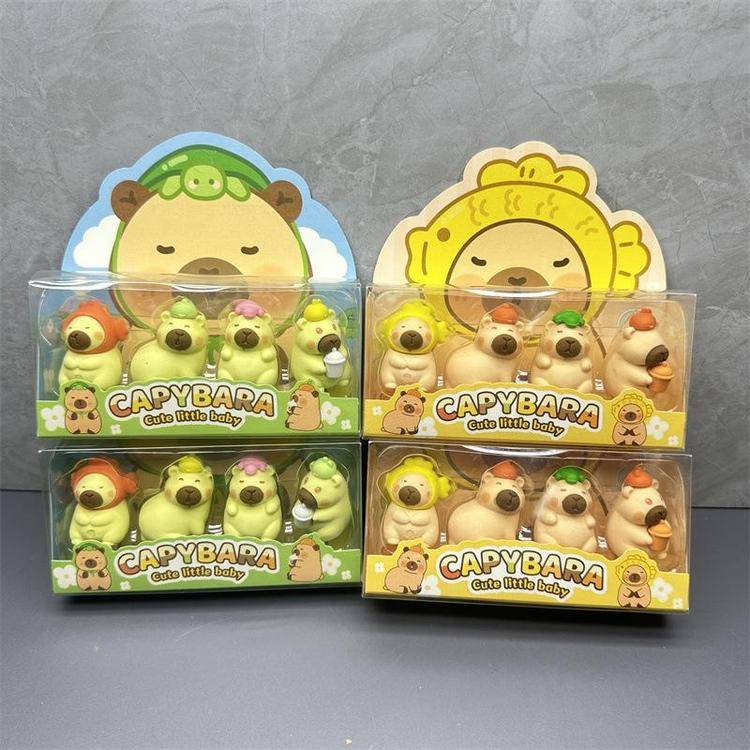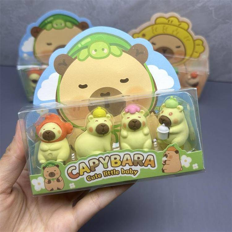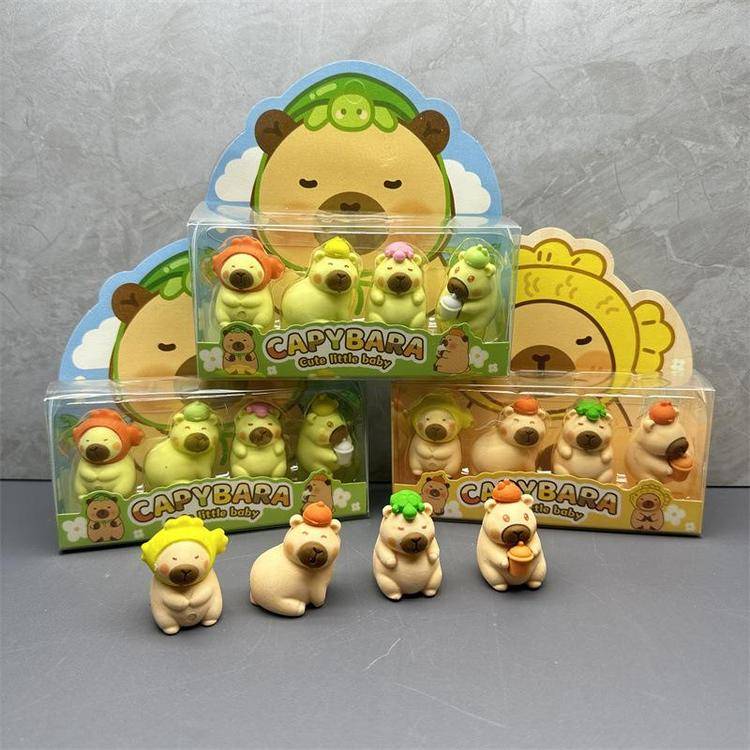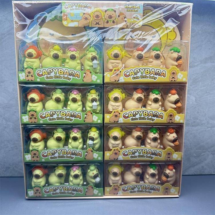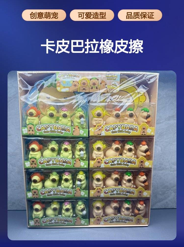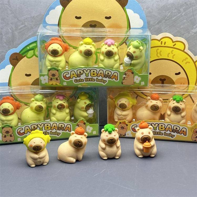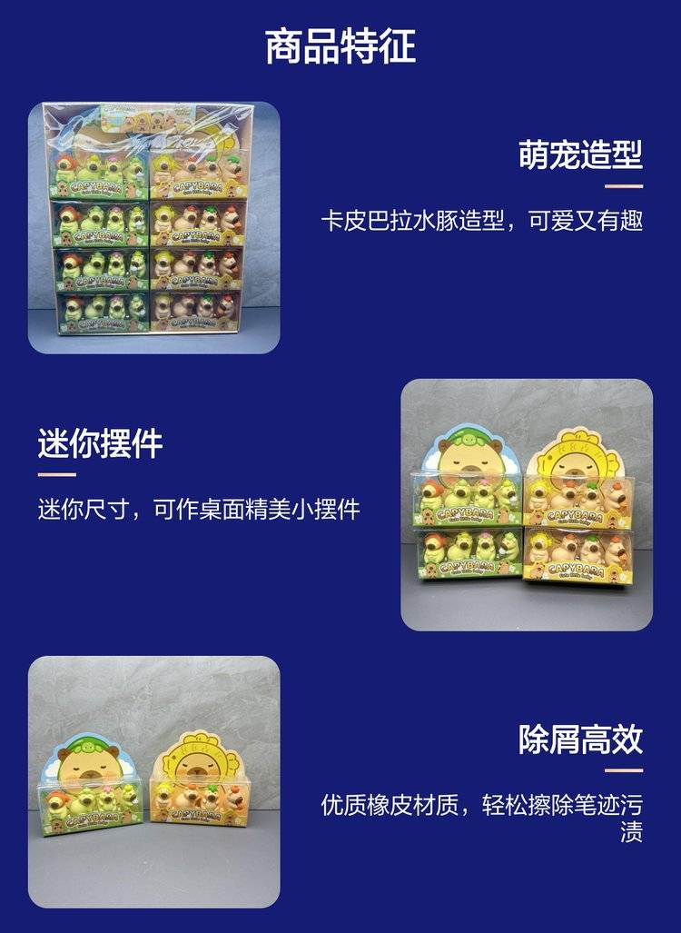 外贸可爱萌宠卡皮巴拉橡皮擦佛系水豚动物迷你摆件橡皮除屑擦礼品