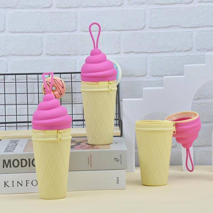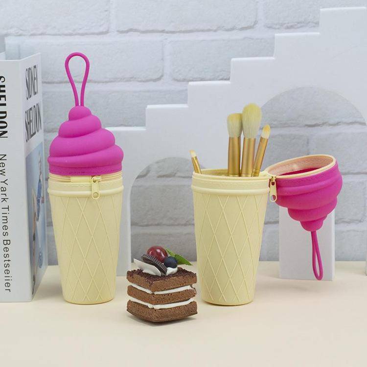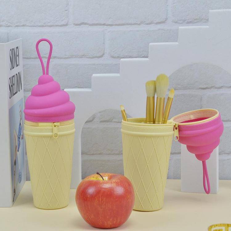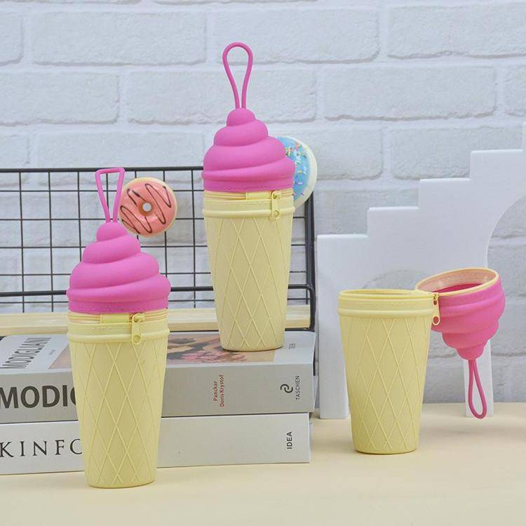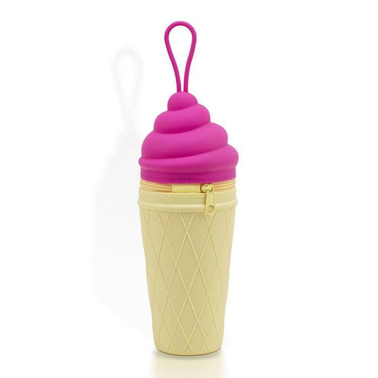柯泰 新品硅胶冰激凌文具盒 带提绳硅胶铅笔橡皮擦收纳盒 可印刷logo