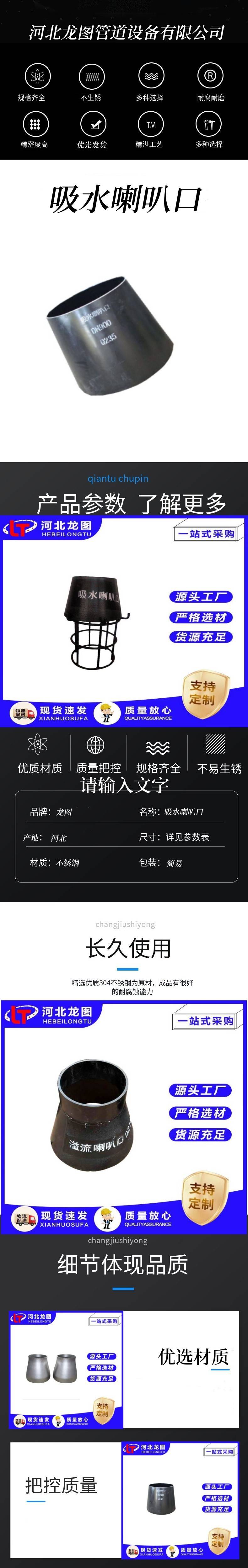 消防水池吸水喇叭 管道辅助材料喇叭管 钢制喇叭口现货批发 龙图