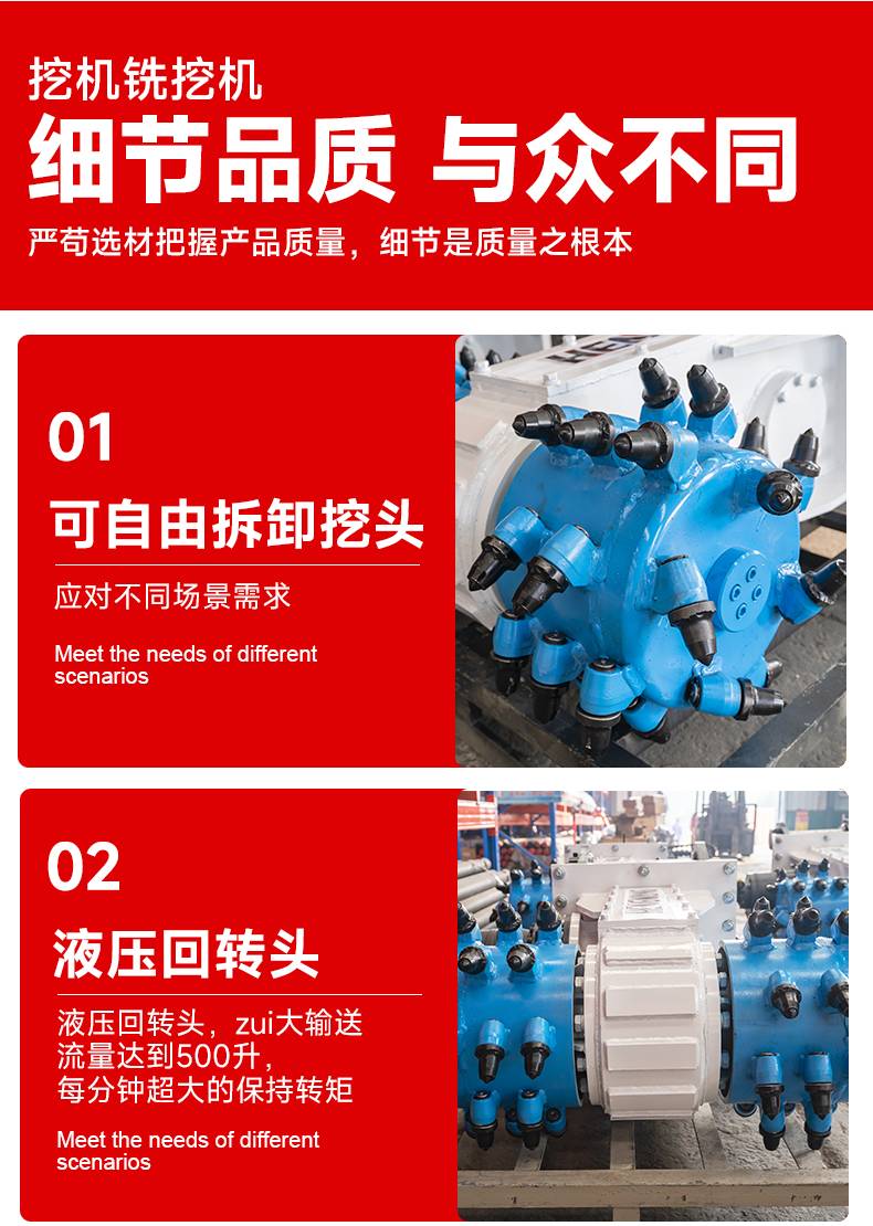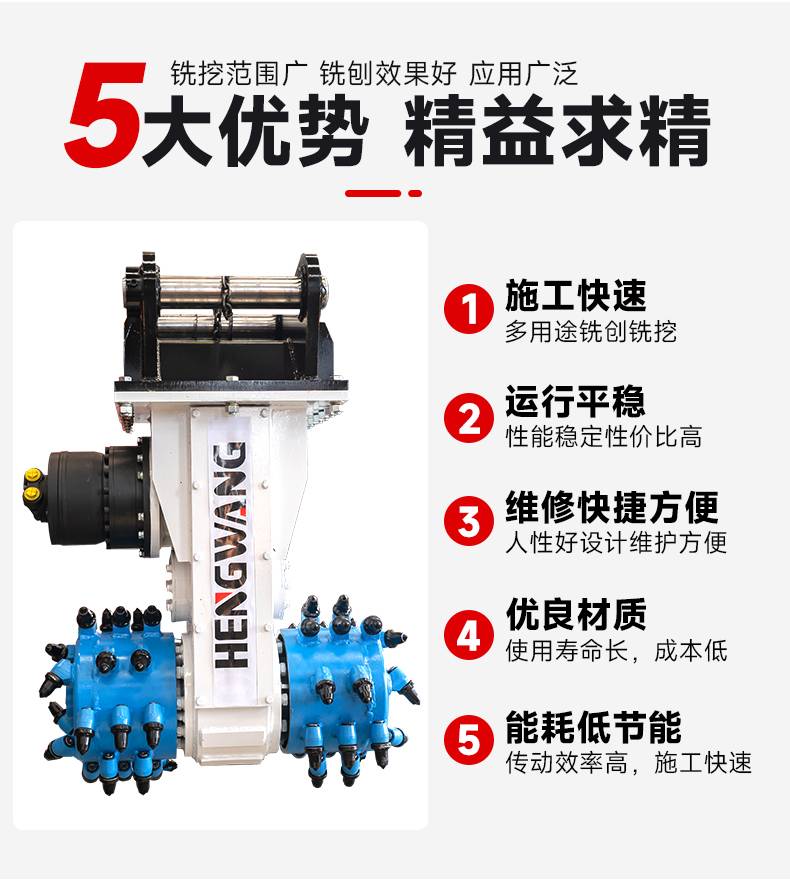 挖机改装铣挖机铣刨头液压横向纵向隧道掘进机混凝土岩石采煤机