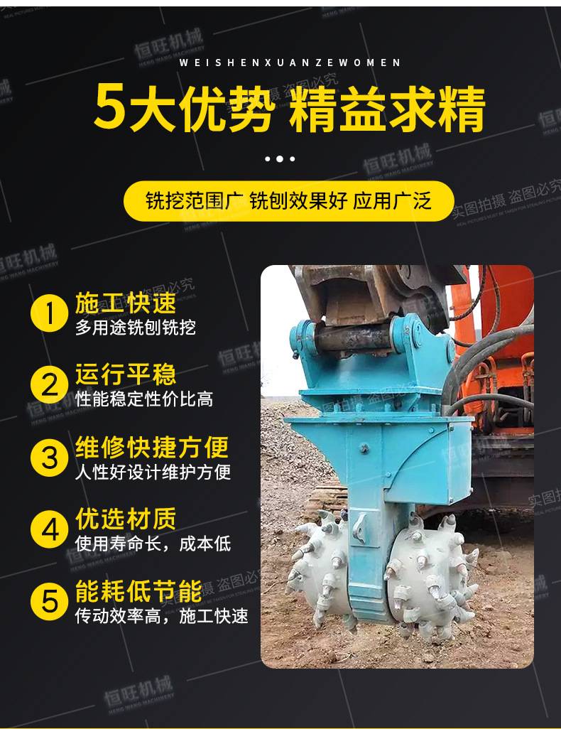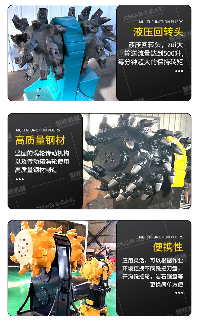 挖机铣挖机铣挖头钩机改装液压横向纵向铣刨机路面隧道开挖掘进机