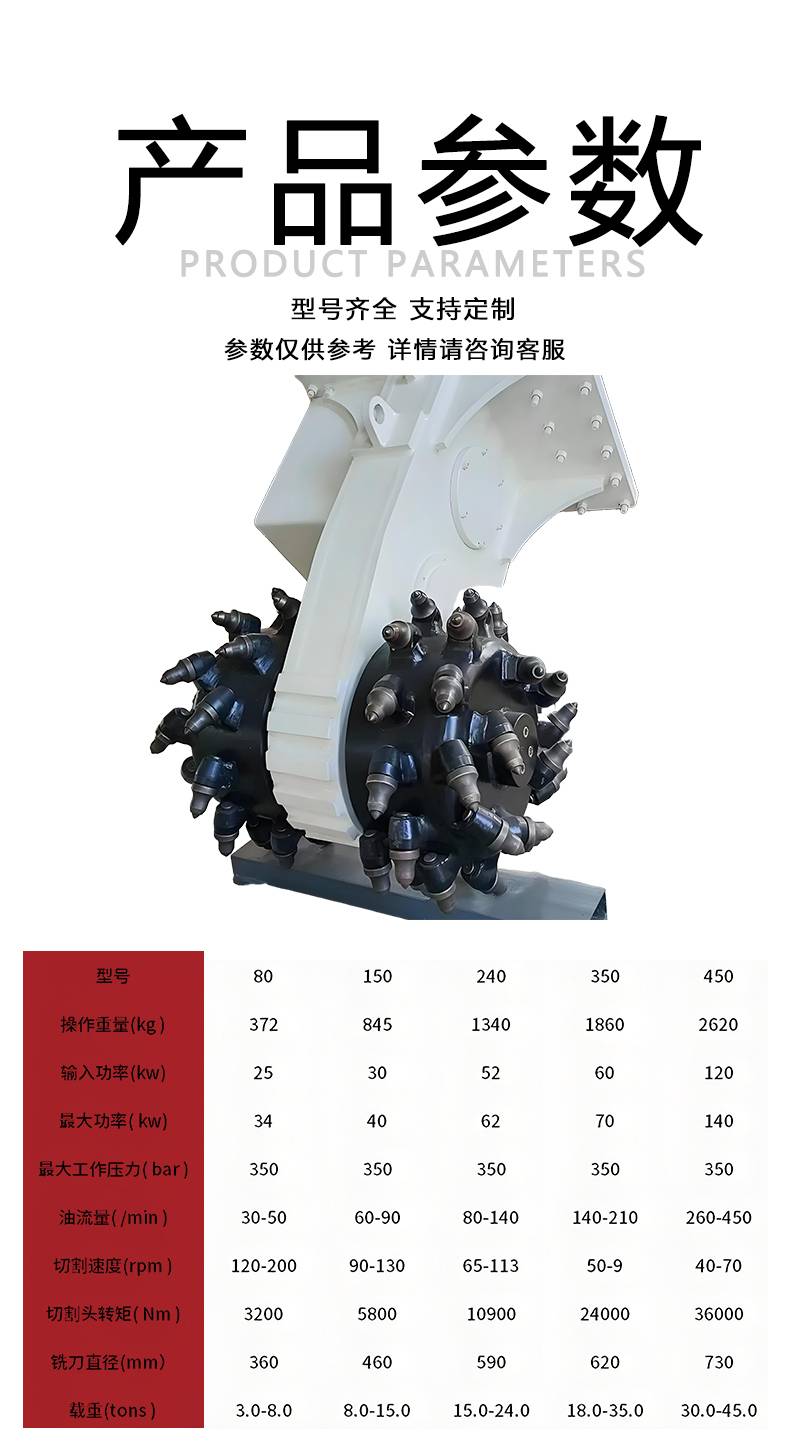 铣挖机混凝土挖铣机开采隧道掘进头可旋转铣挖器