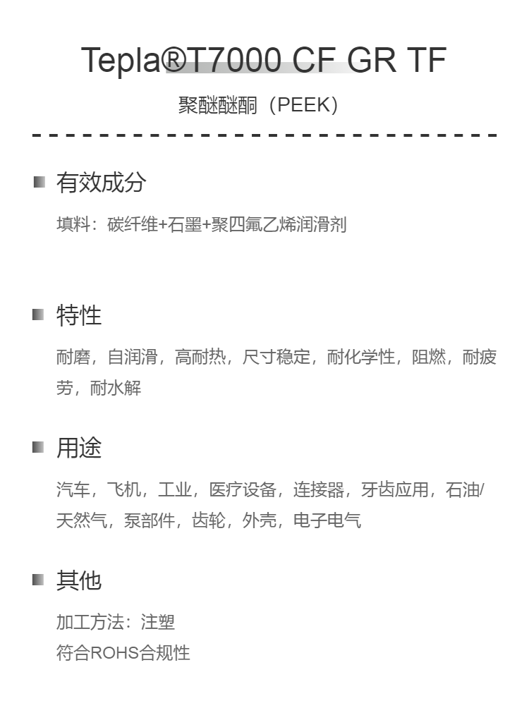 PEEK 加碳纤/石墨/PTFE 耐磨损 抗化学 阻燃 聚醚醚酮