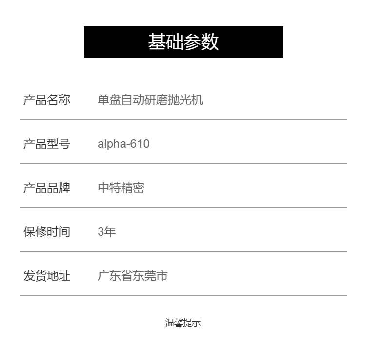 磨抛机alpha-610单盘自动研磨抛光机适用于直径200-300mm的磨盘