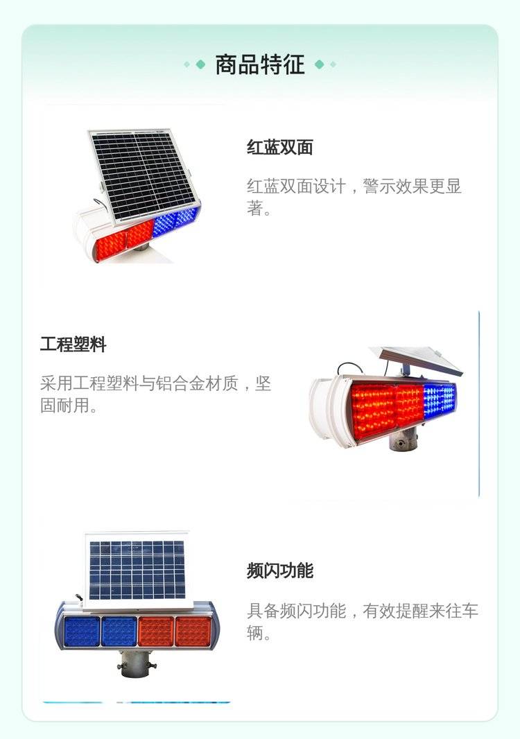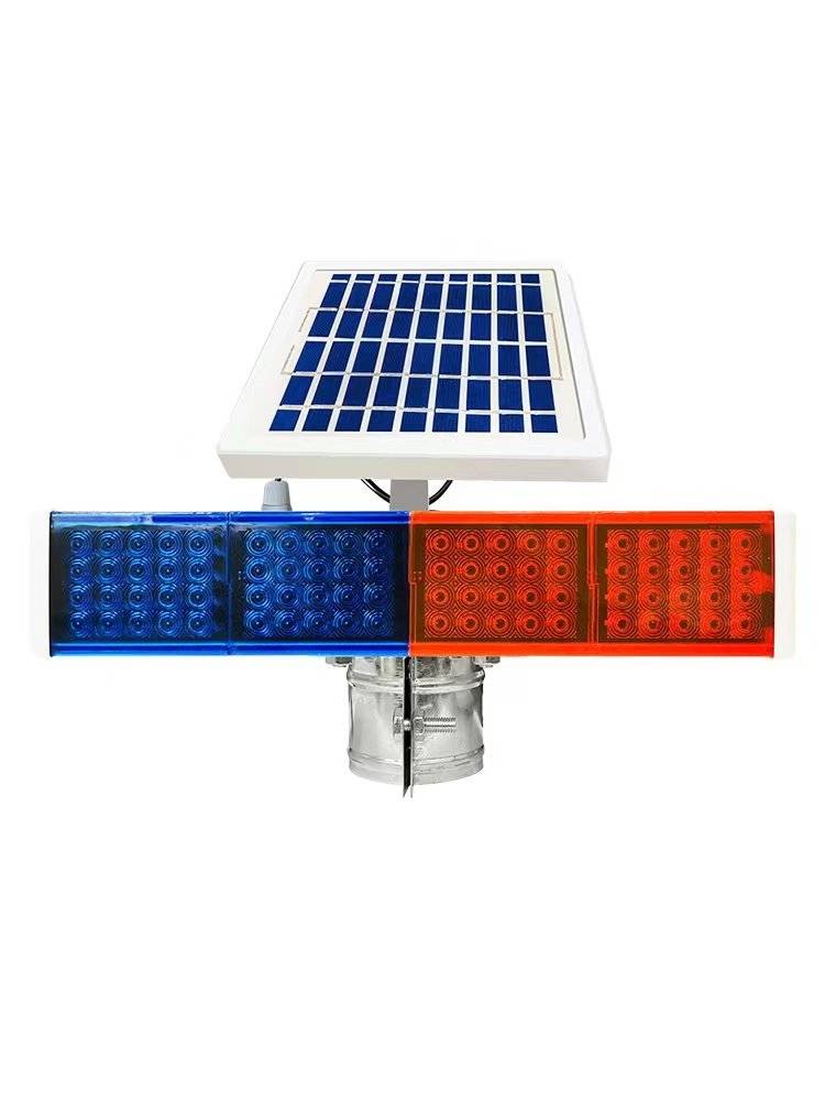 太阳能爆闪灯交通安全警示灯红蓝双面路障灯路口频闪灯
