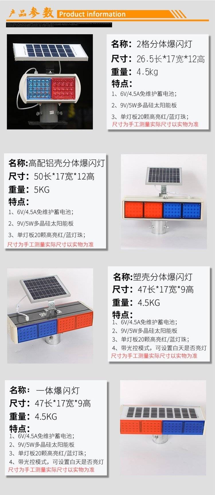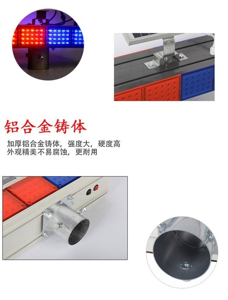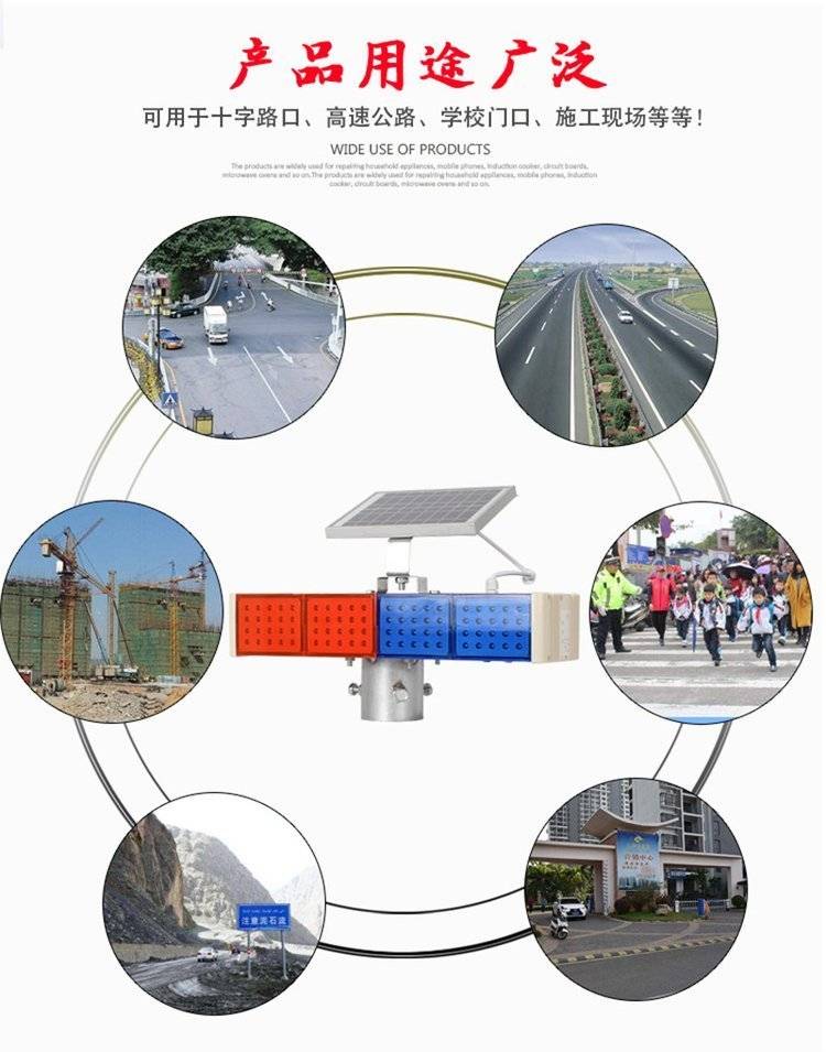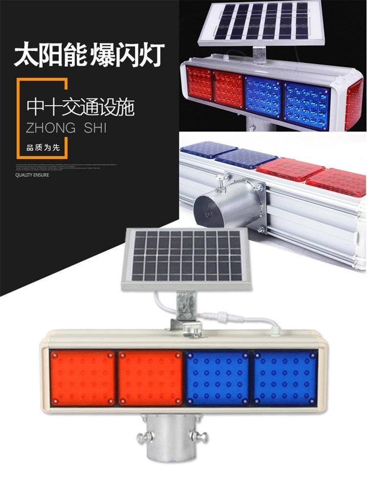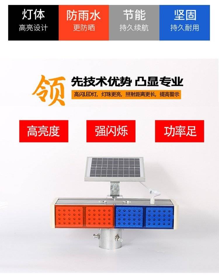 太阳能爆闪灯 警示高亮LED双面红蓝4灯 夜间交通设施工 公路障频闪灯