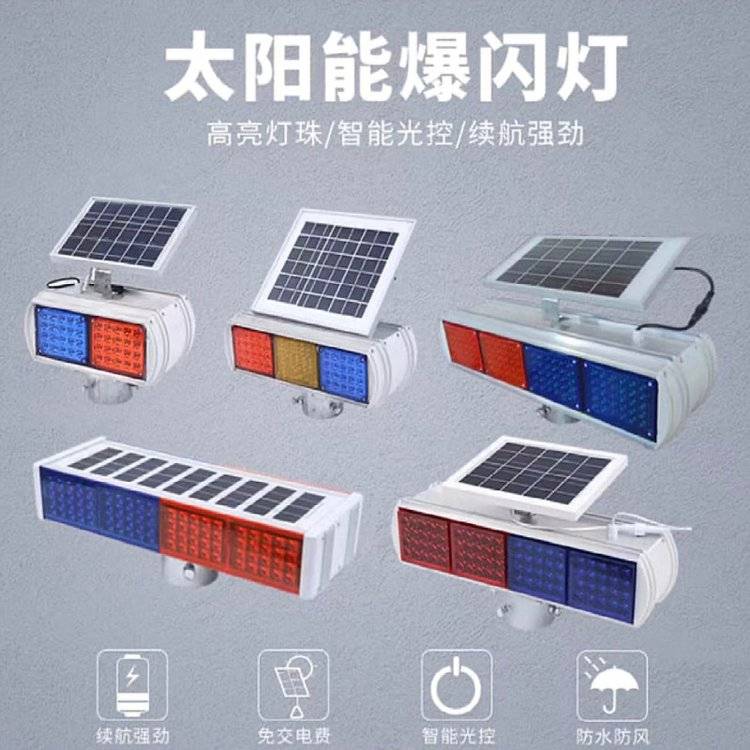 厂家批发太阳能LED警示灯双面红蓝道路施工交通爆闪灯