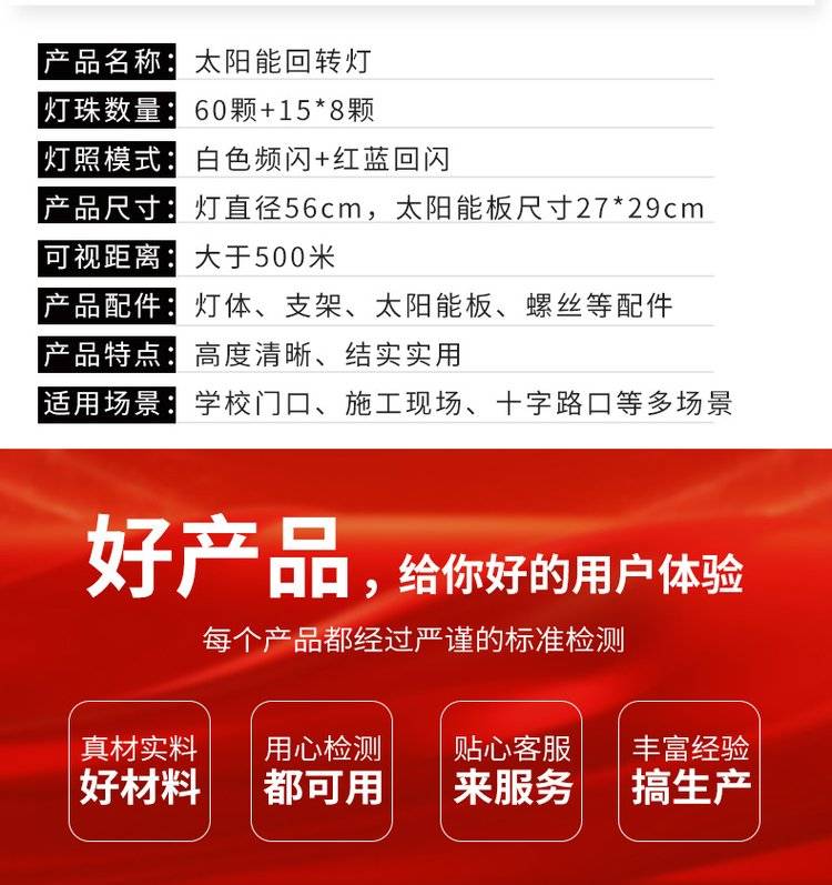 太阳能回转灯回旋红蓝LED闪频交通施工路障安全警示灯爆闪灯支架