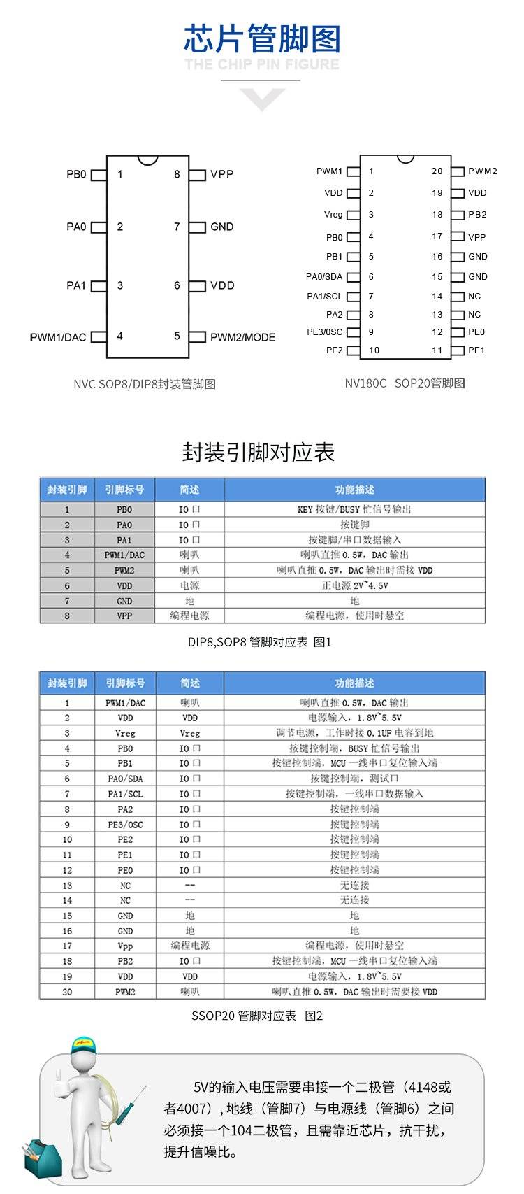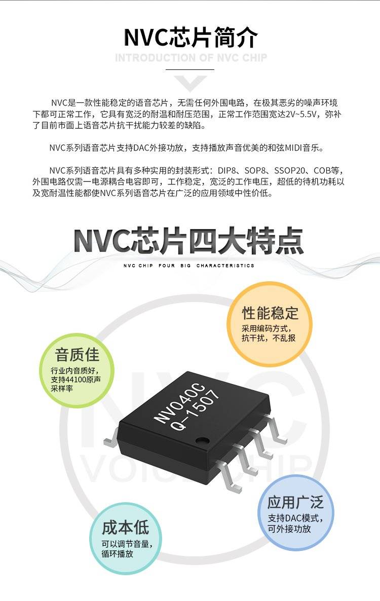 NV080C扫地机语音芯片80秒电动儿童玩具门铃智能锁音乐IC