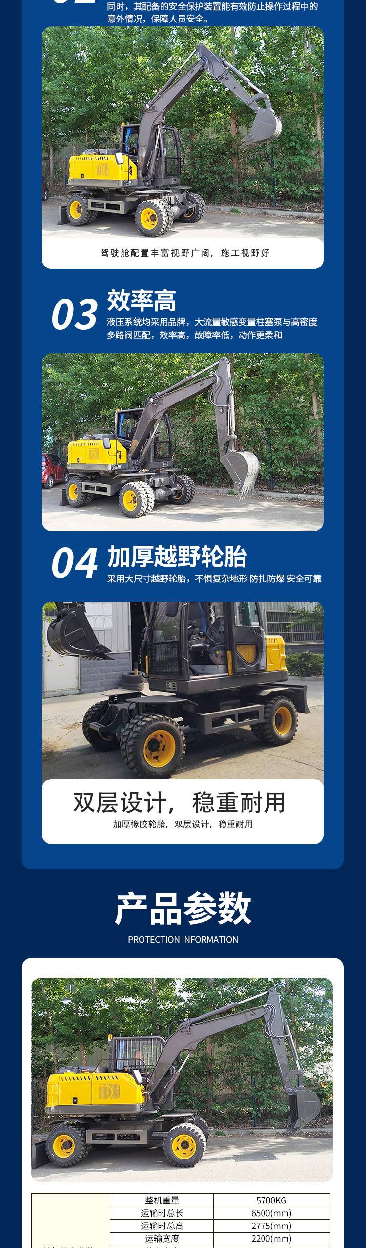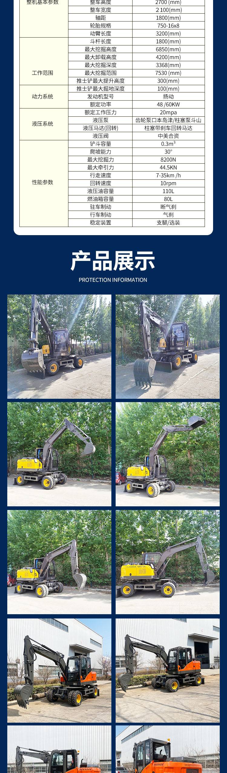 四驱轮式挖掘机 车身灵活稳定 操作简单 园林农用挖土机