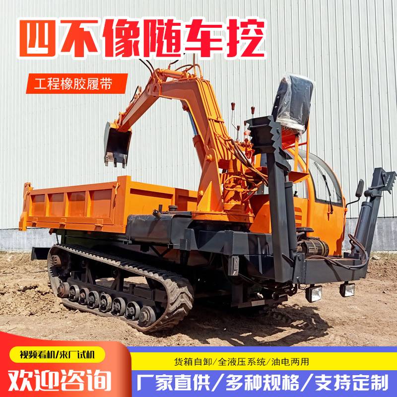 10吨橡胶履带随车挖 全地形翻斗自卸式挖掘机 挖土挖沙河道清淤 长胜