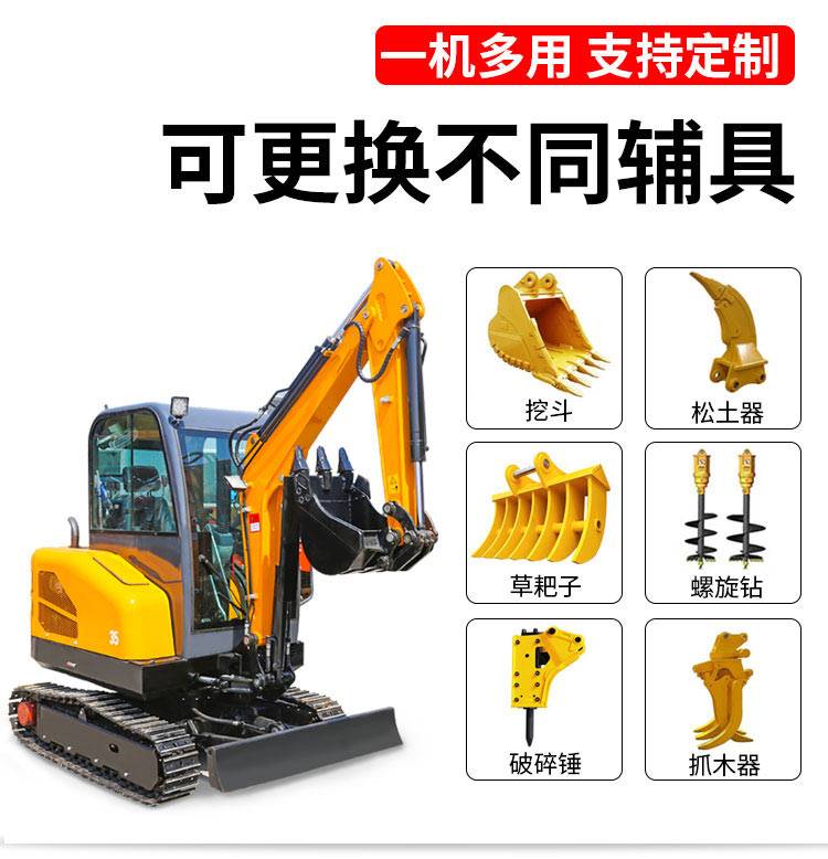 小型挖掘机履带式工程农用挖土机 具备挖掘破碎清沟功能