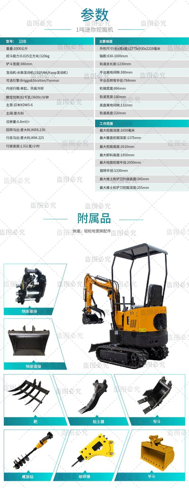 10B小型挖掘机 绿化果园钩机 多功能工程挖沟机 适用范围广 安装简单