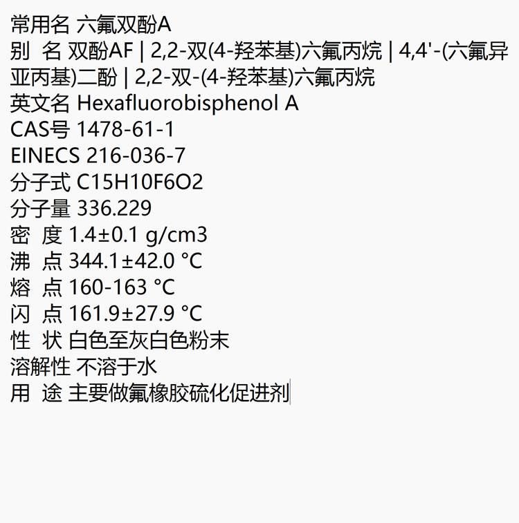 六氟双酚A 1478-61-1 氟橡胶硫化促进剂合成荧光染料PI薄膜聚酰亚胺
