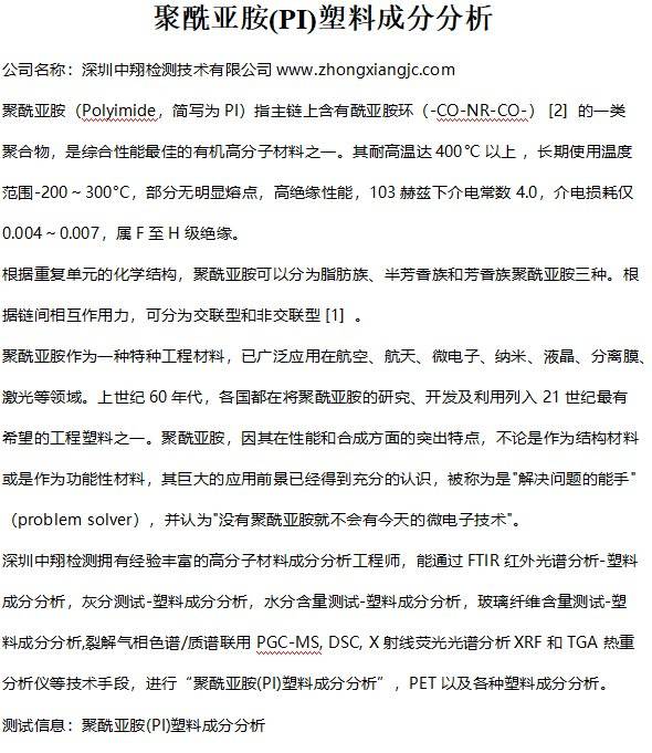 聚酰亚胺(PI)塑料成分分析-高分子材料成分检测-中翔检测机构