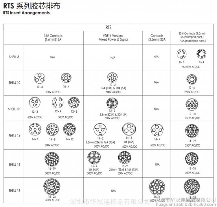 (图片仅示产品外形,胶芯孔位参照孔位排布图示)技术参数:温度范围-40~125°C防护等级IP67工作电流13A Max额定工作电压500V接触电阻耐压2000V绝缘电阻5000M At 25°C盐雾等级48H屏蔽无机械寿命500次RoHSYes适用端子RT 16 公端