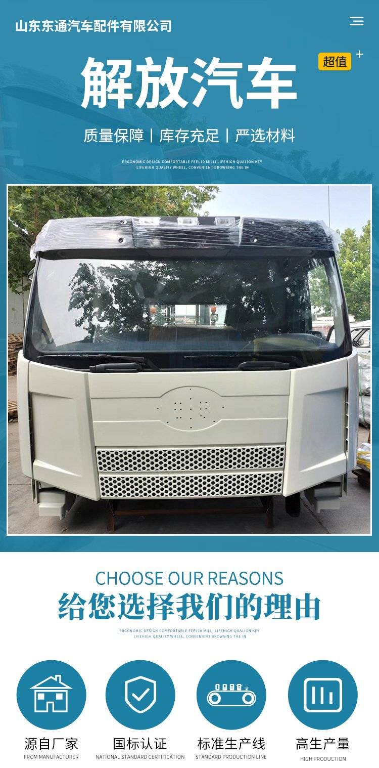 一汽解放J6P420驾驶室总成绿色壳体含保险杠面板