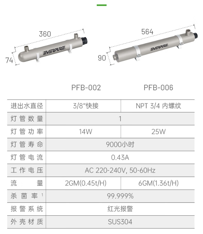 爱惠浦(Everpure)商用设备紫外线杀菌灯含灯2加仑PFB-002