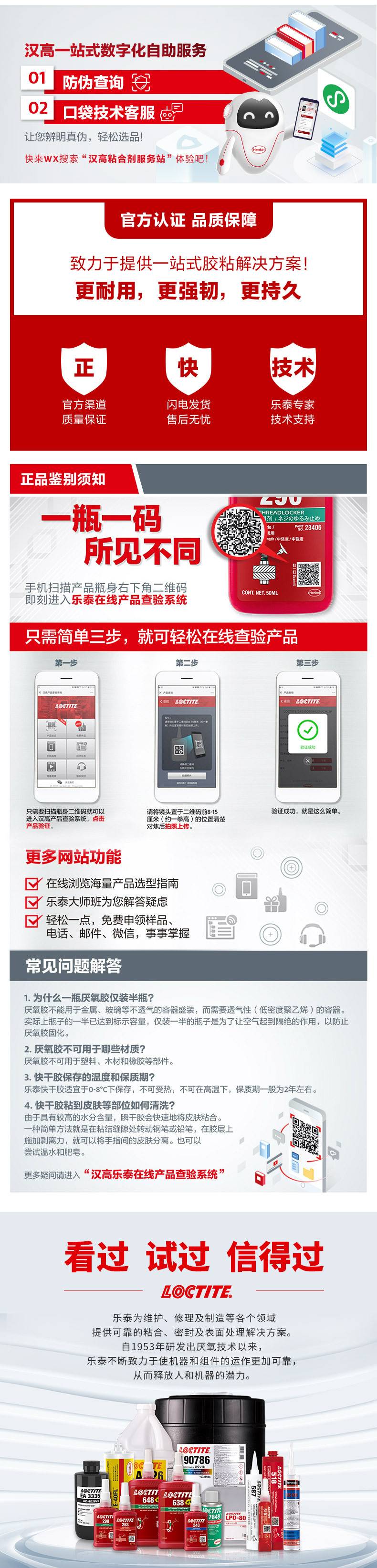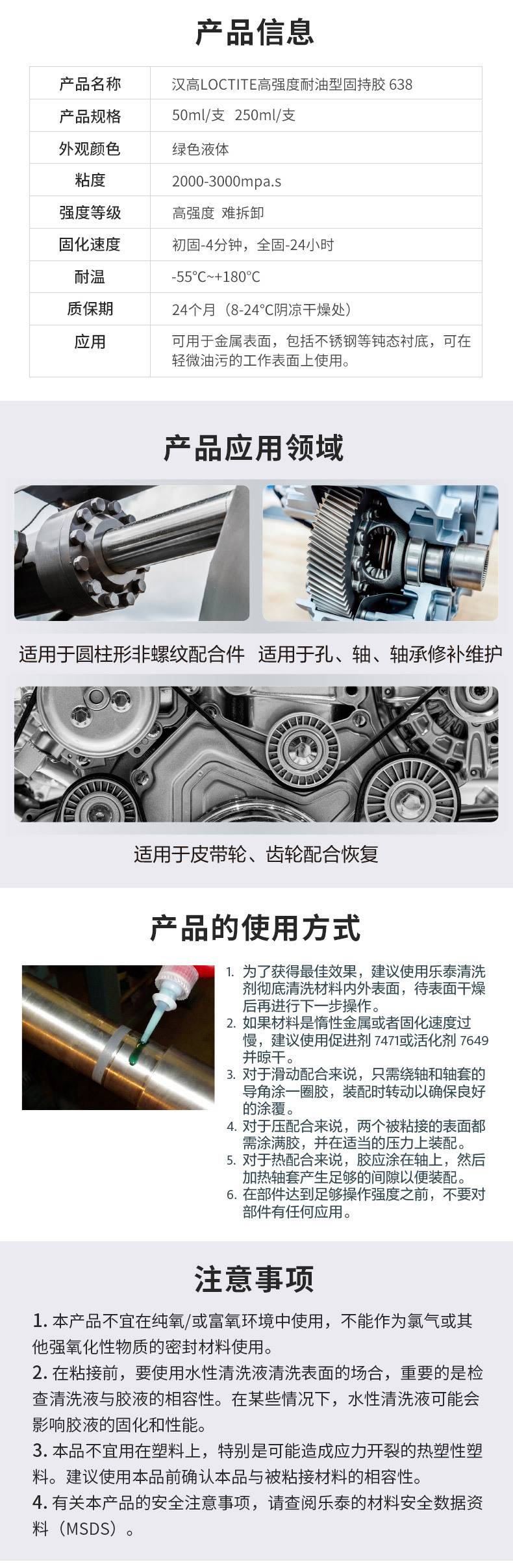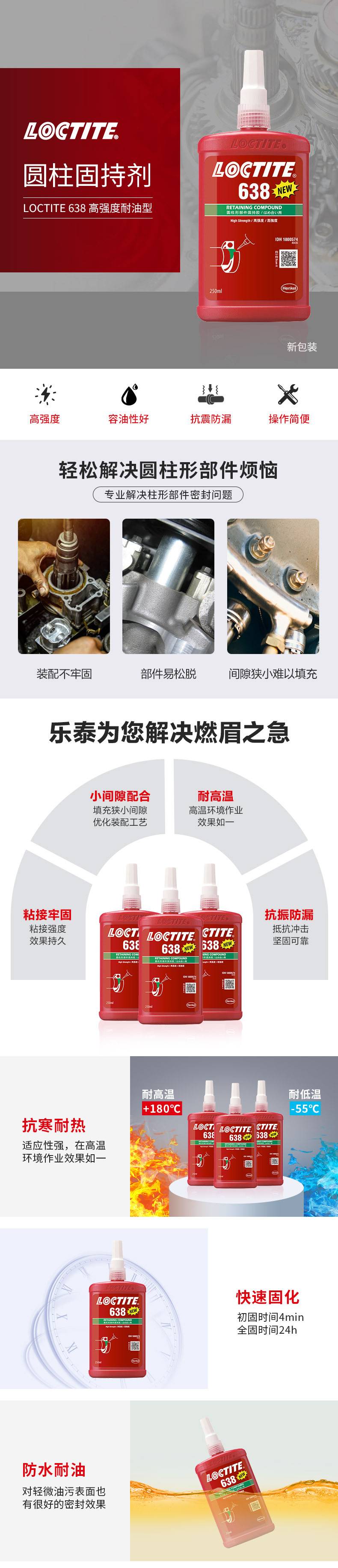 汉高乐泰固持胶638绿色耐高温厌氧胶50ML LOCTITE高强度胶水
