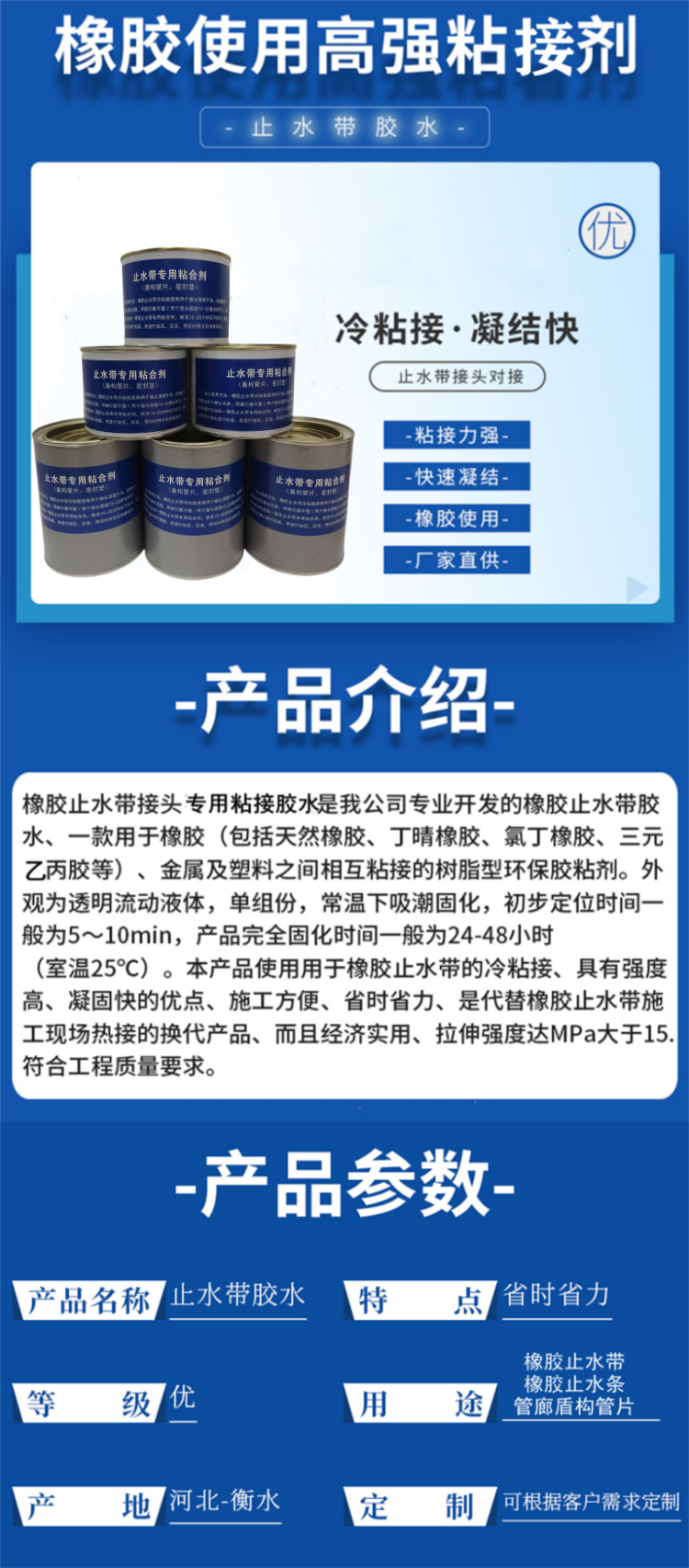 金烨供应 钢边橡 胶止水带胶 水 盾构管片橡胶止水带专用连接胶水
