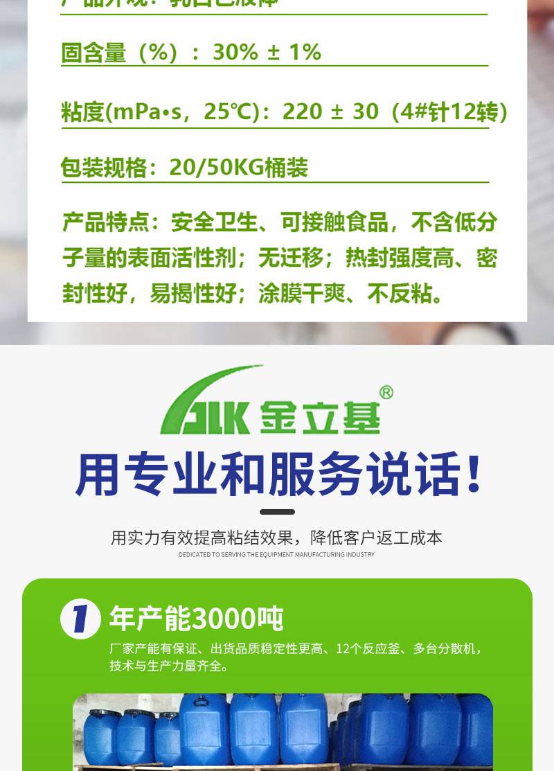 食品包装热封胶水7201 水性热熔胶 抗反粘环保型胶水 金立基